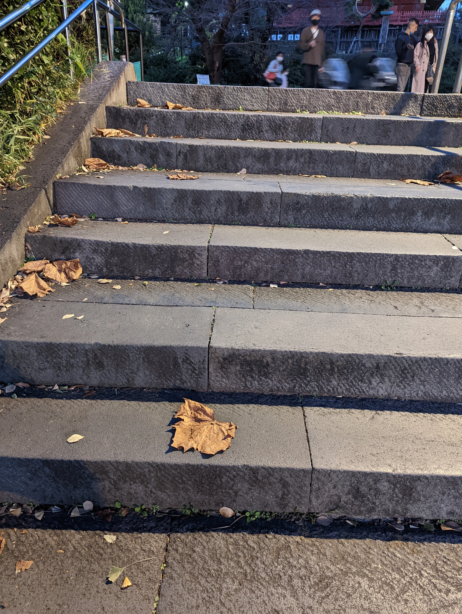 不忍池へと降りる階段は一段一段の長さが均一でなく、とても歩きにくい。よくみると手間を惜しんだのが分かる。こんな些細な事を楽しめる自分が面白い。